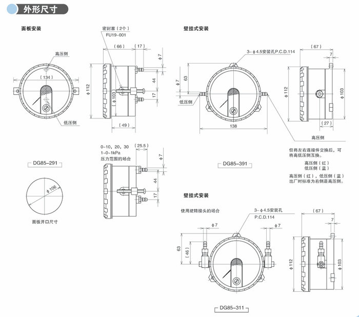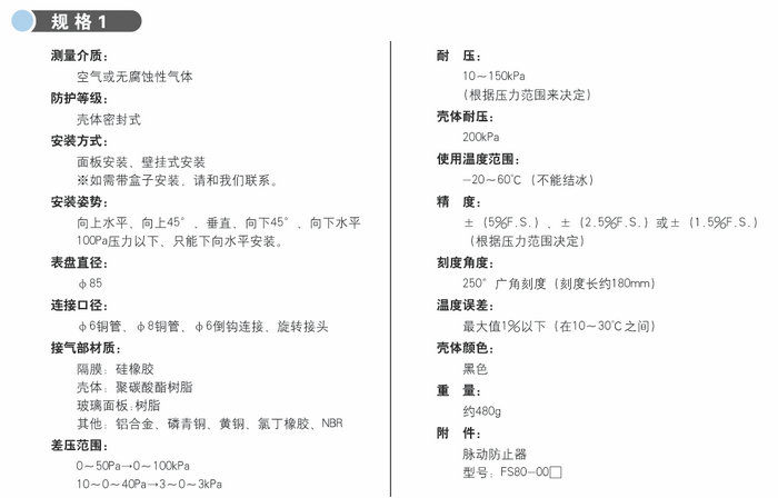 本產品可測量極低的壓力,可以檢測出由于空調過濾器的壓損,還可用于流量計及分壓計上。