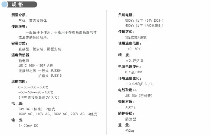感溫部由鉑電阻構成,且感溫部與變送部分分開。