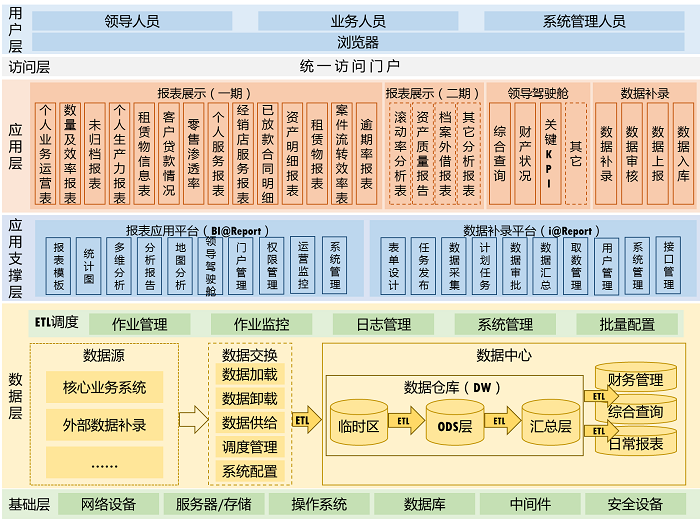 項(xiàng)目建設(shè)范圍:圍繞銀監(jiān)1104報(bào)表、人民銀行報(bào)表、以及行內(nèi)管理報(bào)表為目標(biāo),建設(shè)面向報(bào)表管理服務(wù)的數(shù)據(jù)集市及報(bào)表相關(guān)應(yīng)用。