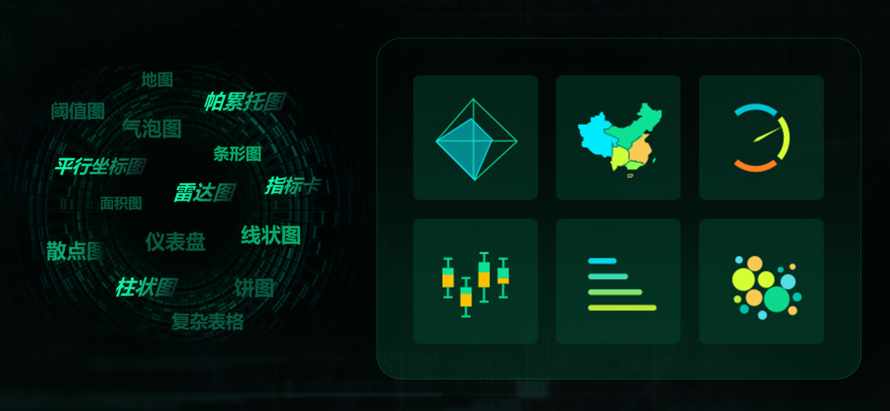 支持敏捷看板,即席報告,幻燈片等多種分析方式,使數據分析更貼近用戶應用的場景。并且提供多種可視化組件:表格、常規統計圖、html5統計圖、地圖等。