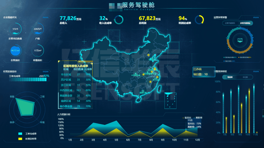 展示各省某指標(biāo)的情況,通過點(diǎn)擊地圖上的區(qū)域從而聯(lián)動(dòng)各個(gè)省的指標(biāo)數(shù)據(jù)。效果如下: