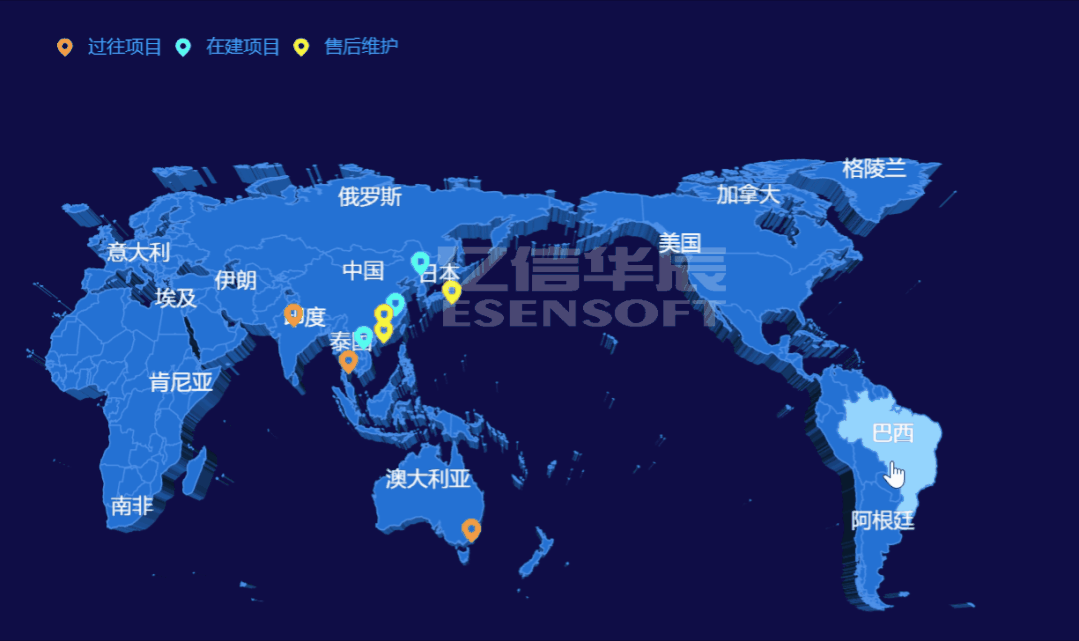 將標(biāo)點(diǎn)和地圖相結(jié)合,以地圖為背景,將每個(gè)國家的數(shù)據(jù)通過標(biāo)點(diǎn)的形式直觀呈現(xiàn)。
